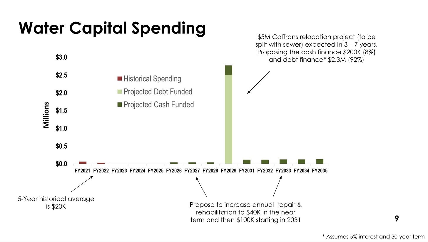 Officials attributed the increases to years of underinvestment in the water system and to an anticipated Caltrans project on Highway 101 that could require the district to assume $5 million in new debt. No documentation for the Caltrans project was provided to the public at the meeting.