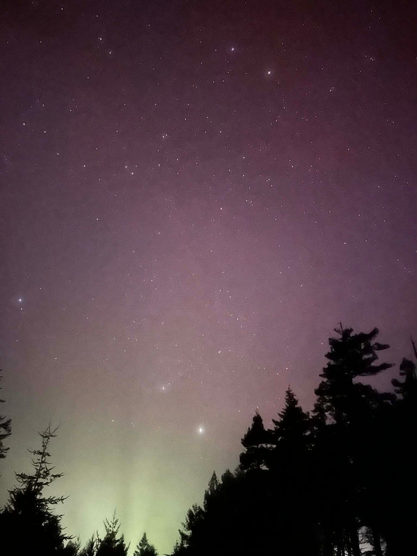 Early morning risers across Mendocino County who looked skyward Tuesday were treated to an unusual and colorful display as the northern lights became visible far south of their typical range. A coronal mass ejection from the sun sent charged particles toward Earth, painting the night with faint bands of purple, pink and green.